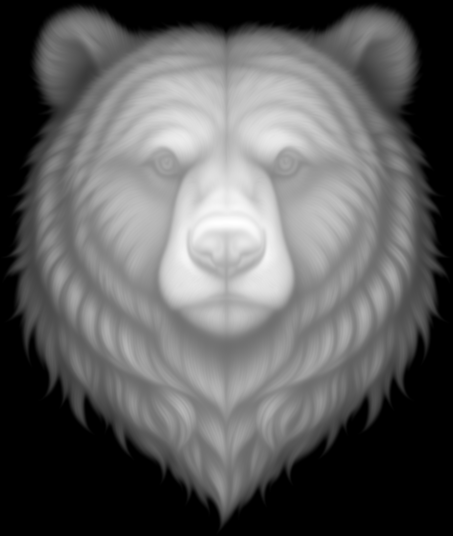 What's a heightmap? It's a grayscale image where brightness represents depth: white is high, black is low. Your CAM software reads this image and creates a 3D toolpath. This file is a 16-bit PNG for maximum detail.