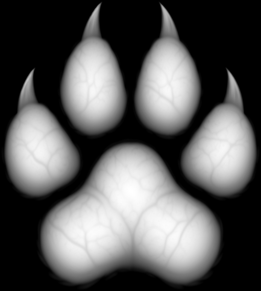 Single wolf paw print with detailed pad texture. Simple bold motif for signs, coasters, and accent pieces.
